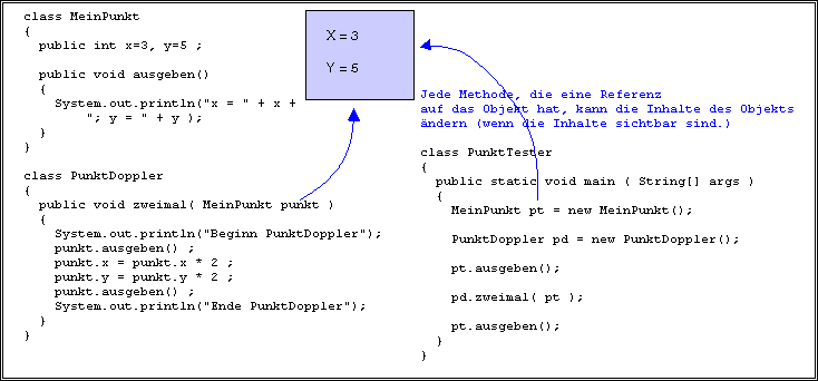 Natürlich, sogar wenn eine Methode eine Referenz auf ein Objekt hat, kann das Objekt nur geändert werden, wenn das Objekt Änderungen erlaubt (entweder durch öffentliche Instanzvariablen oder durch Zugriffsmethoden).