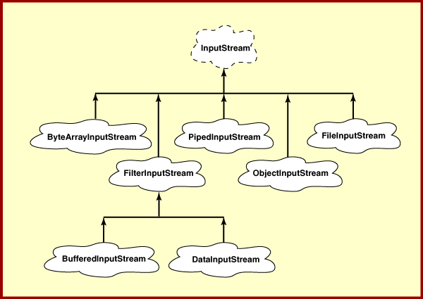 The diagram shows InputStream and some of its subclasses.